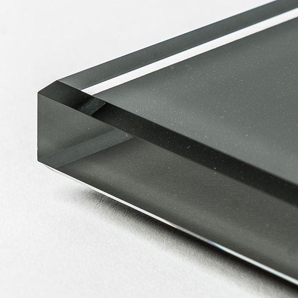 Console in Canaletto walnut (NC) or burned oak (RB) and cylinder in Travertine (TN), black Marquina (NM) or white Carrara (BC) marble. Top in 12 mm clear or smoked glass, laid on the base.