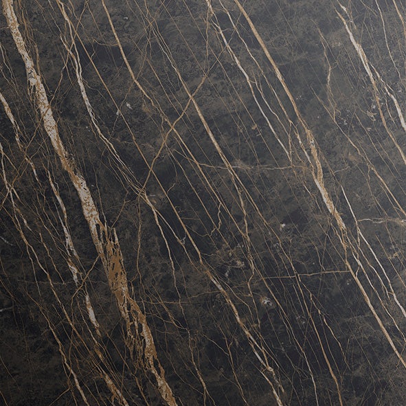 Table with base in bronze (GFM18), graphite (GFM69), pearl (GFM70), black (GFM73) embossed lacquered steel or satin titanium steel (11). Marmi Alabastro (KM02), matt Golden Calacatta (KM05), glossy Golden Calacatta (KM06), matt Portoro (KM07), glossy Portoro (KM08), glossy Sahara Noir (KM09), Makalu (KM11), Breccia (KM12), Corcovado (KM14), Kaindy (KM16), matt Borghini Calacatta (KM18), glossy Borghini Calacatta (KM19), Colosseo (KM21), Andromeda (KM22), matt Invisible (KM24) or Luxor (KS23) ceramic top. Glazes on the satin titanium base are due to the handmade processing. Optional central swiveling tray Lazy Susan.