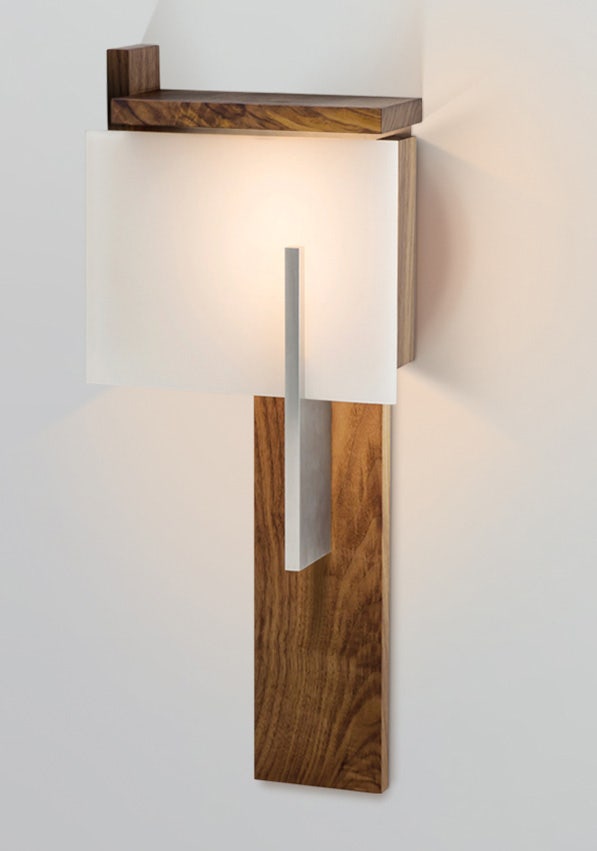 The Oris has a strong and commanding presence with its highly architectonic form. The thick solid stock walnut and solid aluminum central fin give the Oris a feeling of permanence and integration into the surrounding architecture. The simple asymmetrical composition adds an understated complexity, as well as excellent illumination, to any wall.