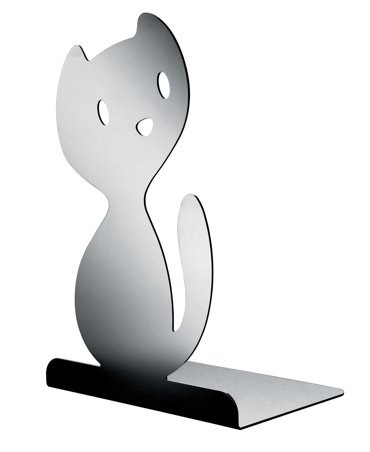 Three characters emerge from the rich/fervid/tireless/volcanic imagination of Miriam Mirri, giving rise to a highly original series of bookstads. Thanks to the reflective nature/properties of the stainless steel, the bookstands can be arranged so as to capture the endless reflections and images that dance on their surface.