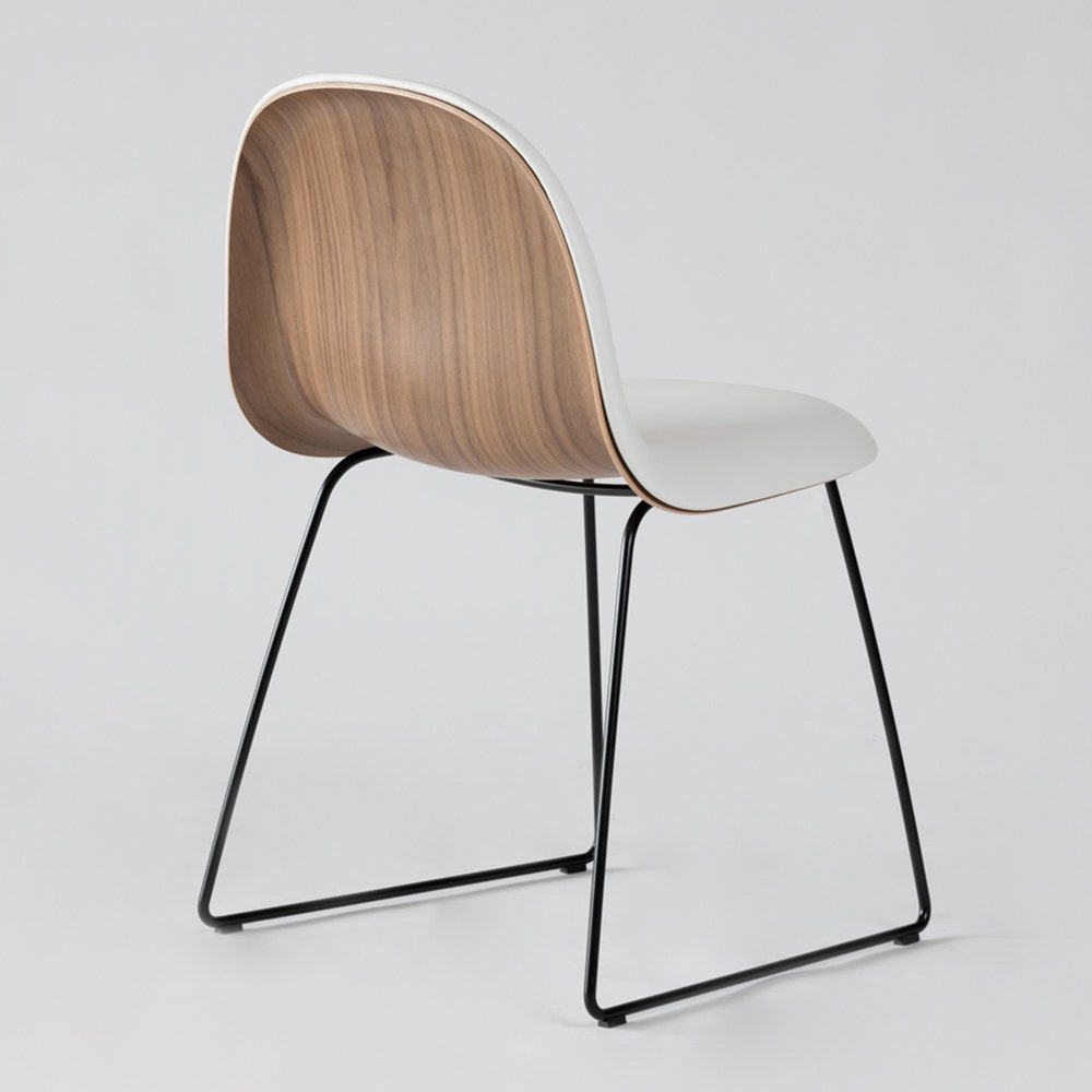 CLEARANCE GUBI 3D Sledge Base Dining Chair - Walnut shell, Front Upholstery in Savanne Leather - White