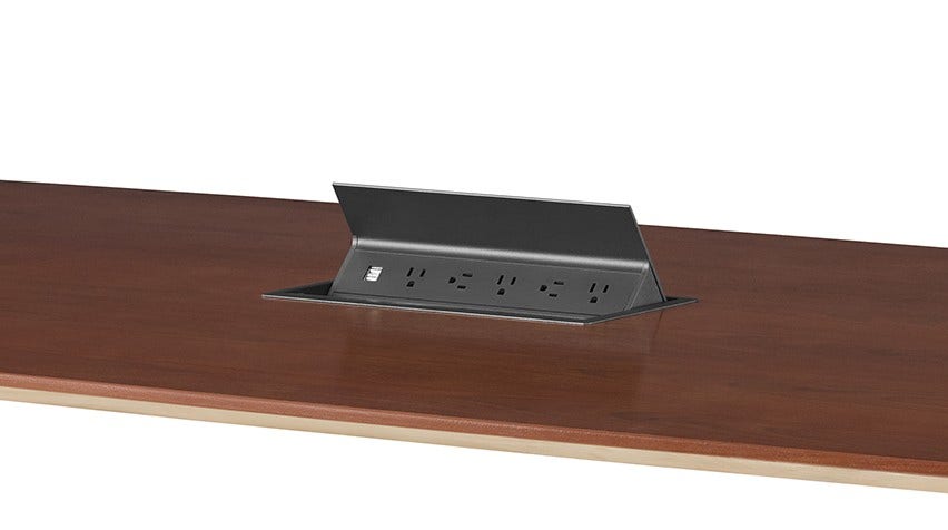 As personal devices become increasingly important, so does the energy the Logic Grommet Mounted Power solution brings to them. Logic mounts flush with a table surface, making it an inconspicuous addition to any surface. Lifting Logic’s hinged cover reveals an ingenious design that puts receptacles and ports close at hand and cords and cables out of sight.