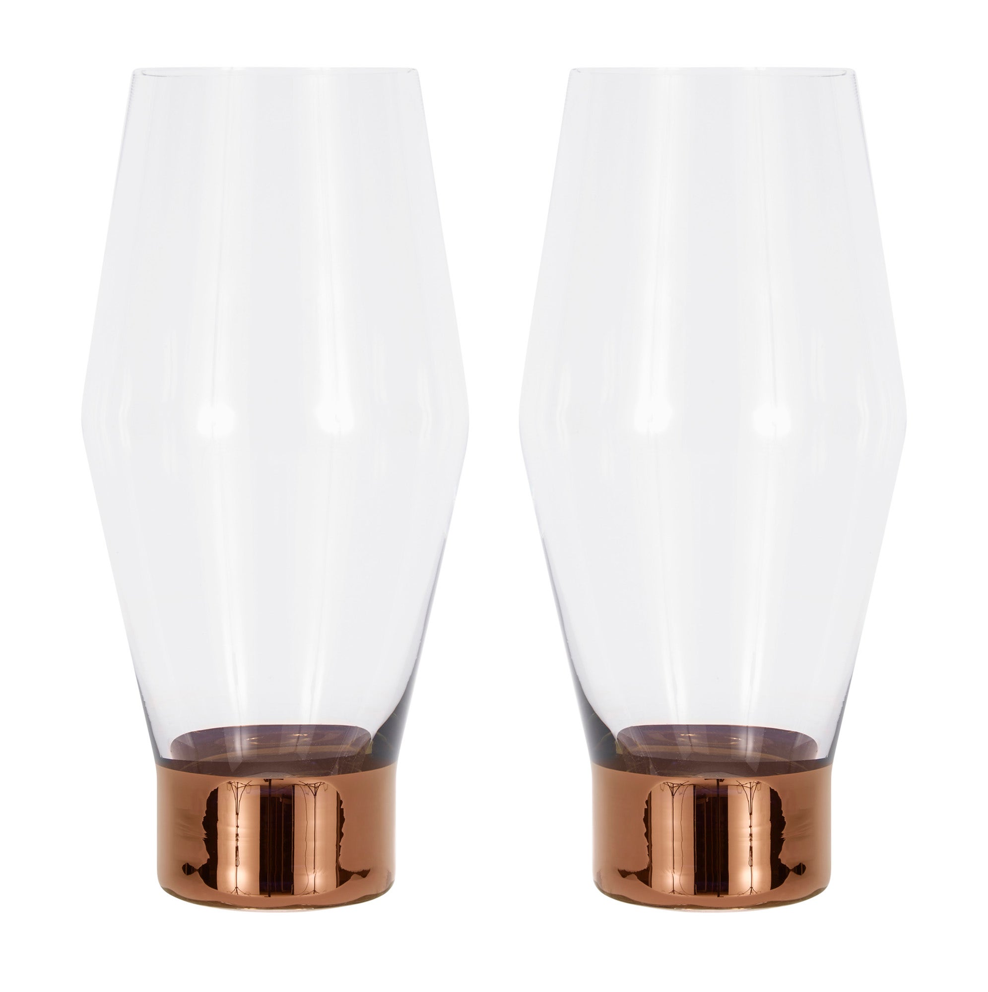 Tank Beer Glasses are sold in pairs. Mouth-blown and ornamented with hand-painted copper detailing they form part of a collection alongside our Tank Low Ball, High Ball, Wine and Champagne Glasses. A Jug and a set of vases are also part of the Tank range. Presented in gift-packaging.