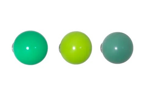 - Balls: painted wood, various colours