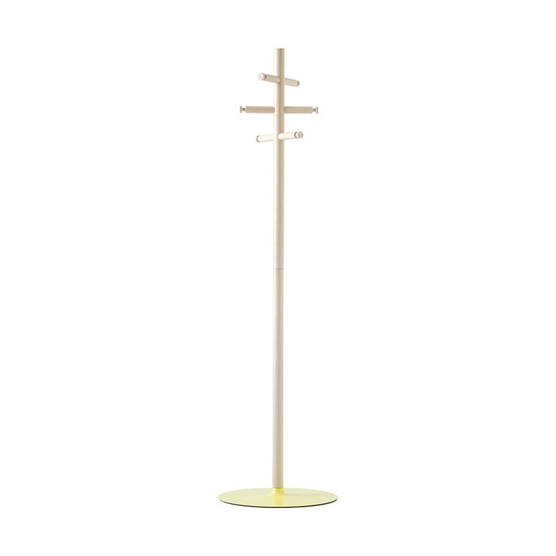 Coat hook with weighted base, metal column and hooks in beechwood.