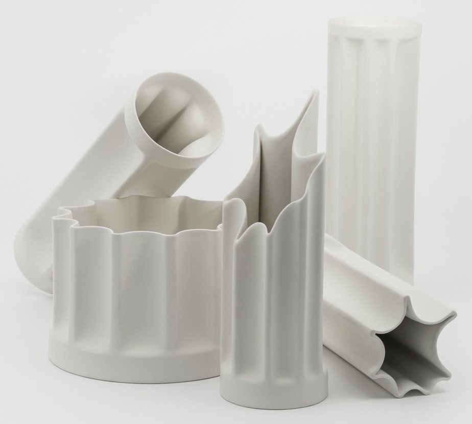 Bambu is the outcome of extensive research into industrial production processes and their implications for the work done by human hands with more traditional techniques. The re-edition of this collection of vases is ceramic with an opaque white finish. The simplicity of this material serves to enhance the substance of the subject itself.