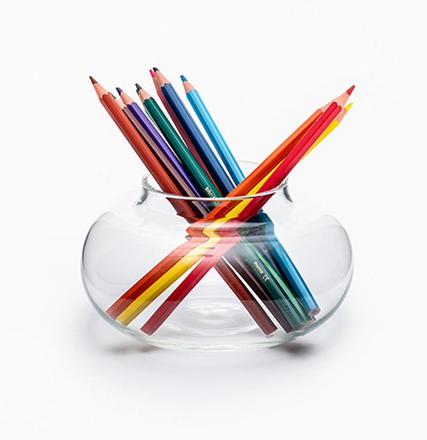 A collection of objects in transparent borosilicate glass made from a common shape. The name that divides itself echoes the production. It is a project that from a single shape sectioned.
