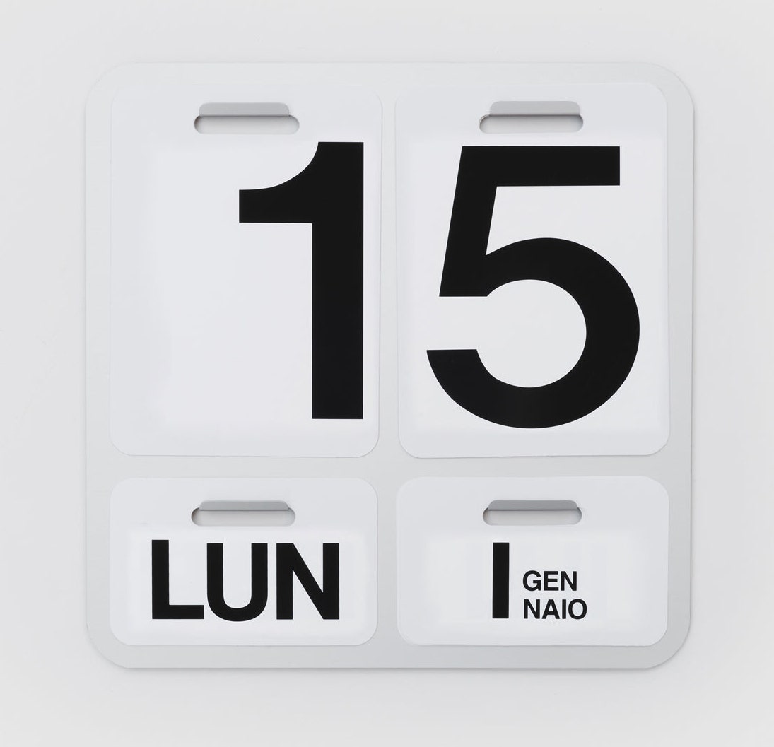 Formosa is a wall calendar with an aluminum back plate that supports the removable sheets of PVC that make up the date. The font used is Helvetica and the piece is one of the classic pieces of the collaboration between Enzo Mari and Danese Milano.