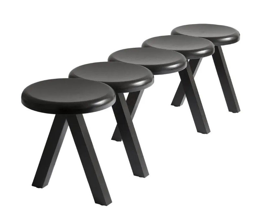 Bench with five seats and spaced legs, made entirely of solid ash in the “open pore” ebonized finish.