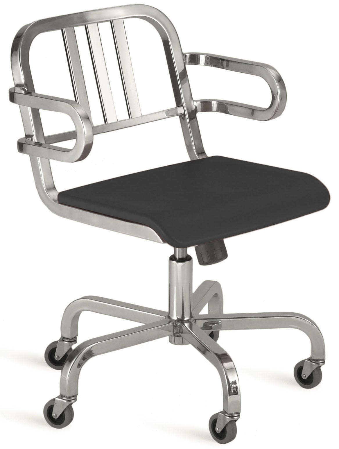 Before he died at the age of 90, Ettore Sottsass worked with Emeco on his last chair- the Nine-0. The inspiration was Sottsass own Navy chair in his Milan apartment-but this time with a soft polyurethane seat and back and with or without the classic “Sottsass” arm.
