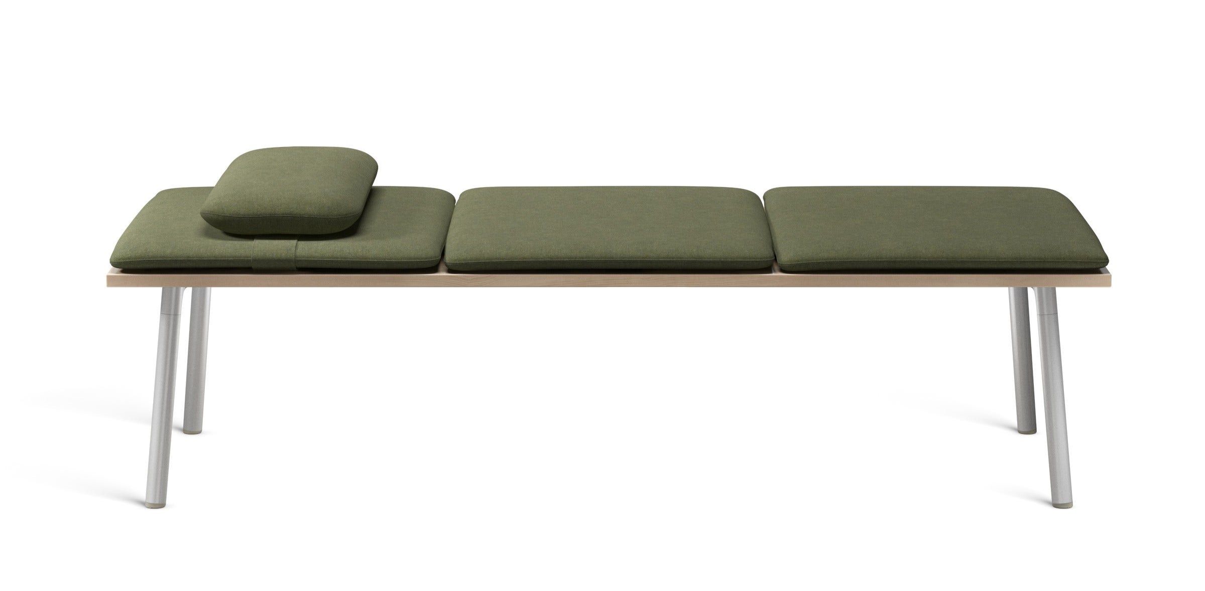 Run daybed is offered with a top in solid ash, walnut or accoya, all sustainably sourced and crafted locally by Amish woodworkers in Lancaster, PA. The cushions are upholstered in a timeless selection of Spinneybeck Volo leather, Kvadrat Hallingdal fabric and Sunbrella Heritage fabric, which is also suitable for outdoor use in combination with the accoya wood tops.