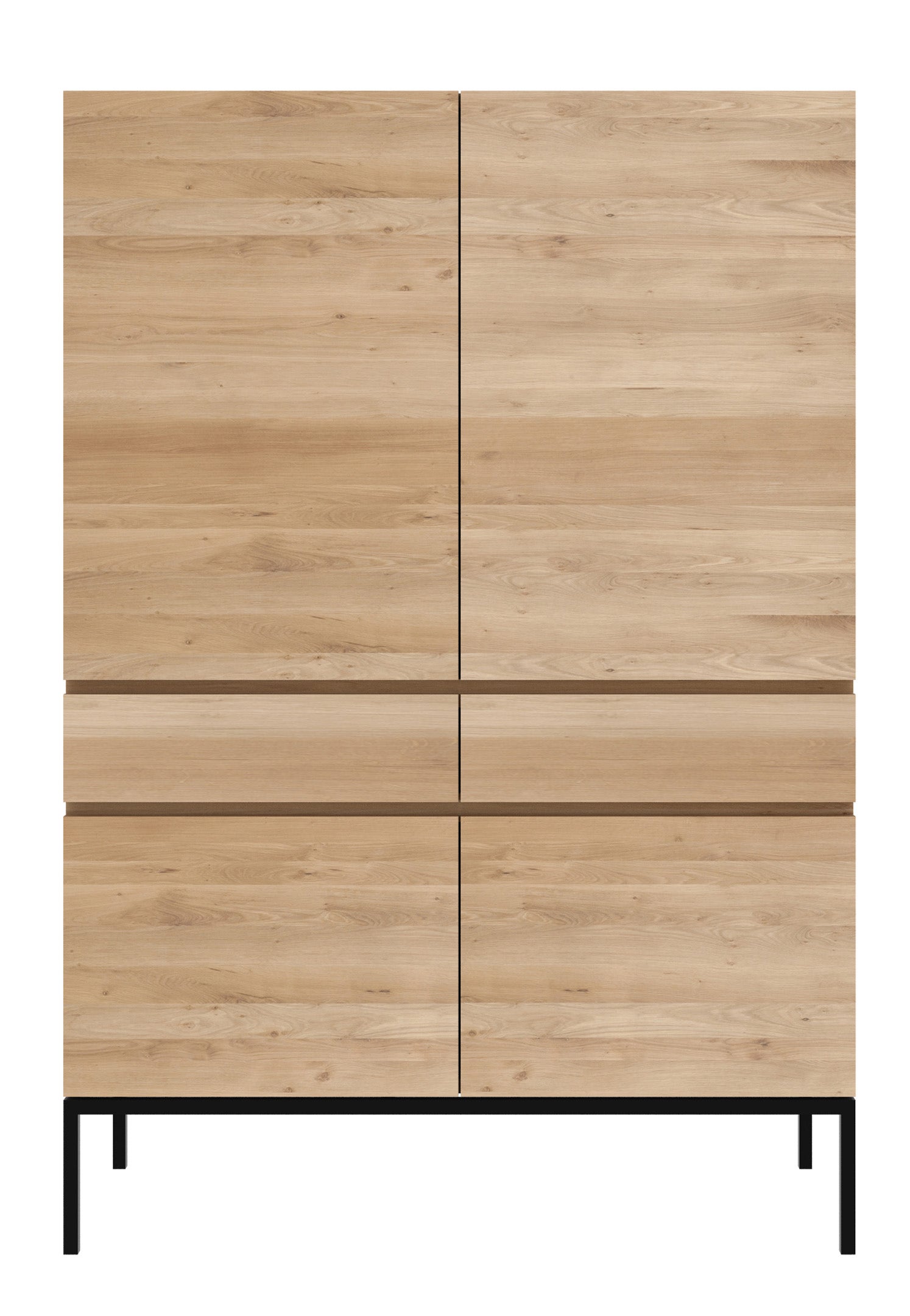 A clean and pure look with black metal legs, the Ligna storage cupboard offers a perfect storage facility for the kitchen, living room or dining room. This cabinet is made from solid oak and features four doors and two drawers.