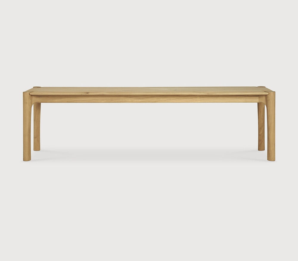 The PI collection honours nature’s design by keeping the strength, curves and lines, as nature intended. Interesting shapes are discovered in this sleek and stylish, polished imperfect, finish. Each PI item is finished by hand to ensure that the individual character of the wood is respected. The PI bench pairs well with the PI dining table, but also adds style as a standalone in an entryway.