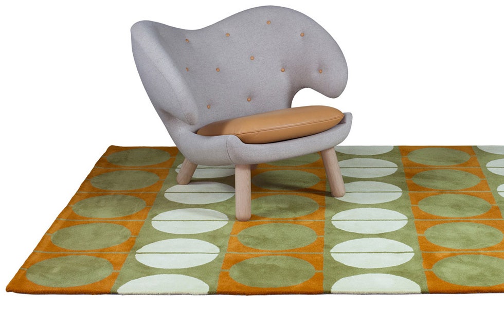 During the 1960s, Finn Juhl designed a series of rug patterns for the Danish carpet manufacturer Vittrup, none of which were ever produced. The rugs are produced in two sizes: 175 x 175 cm or 175 x 245 cm and come in four different colour combinations: green/orange, grey/black, blue/navy and beige/nature. The carpets are hand-tufted in a wonderfully dense 100% wool quality.