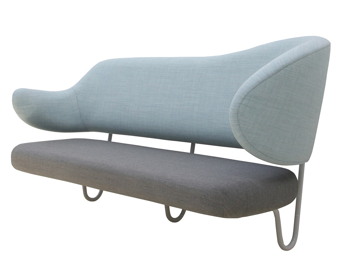 Finn Juhl featured this sofa in several of his interior design projects such as Villa Aubertin in Denmark, which he designed in 1952, and in the museum Nordenfjeldske Kunstindustri-museum in Trondheim, Norway. At the museum, he was commissioned to design a showroom with modern furniture and crafts representing a modern 1952 interior style.