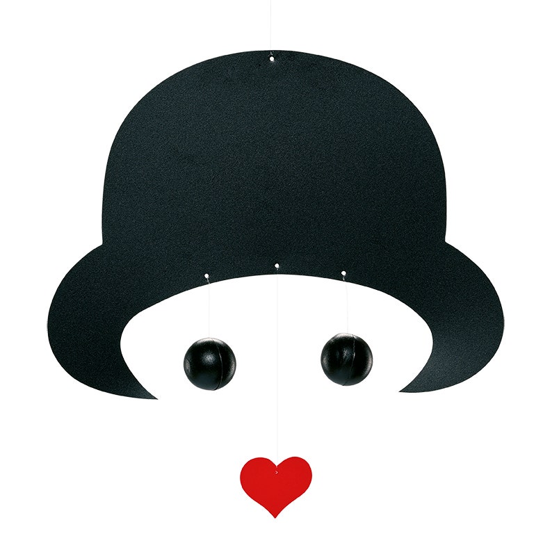A sweet and lovely girl from the roaring twenties. Miss Charleston matches well with Mr. Bowlerman, and we wonder if they might be in love? The mobile is a part of our suitcase-series. It is packed in a neat, little white suitcase.