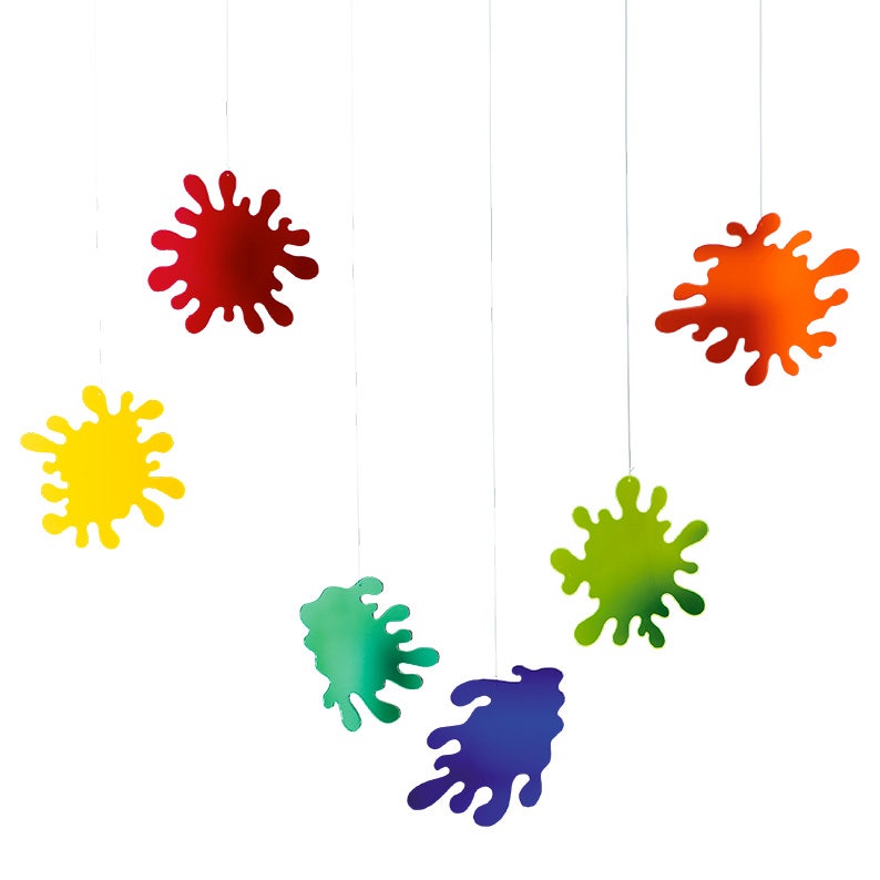 Put me in a window. Splashes of colour will come into your room like magic. The light will shine through the coloured plexiglass and will play brilliantly along the edges of the “drops” as the shapes turn.