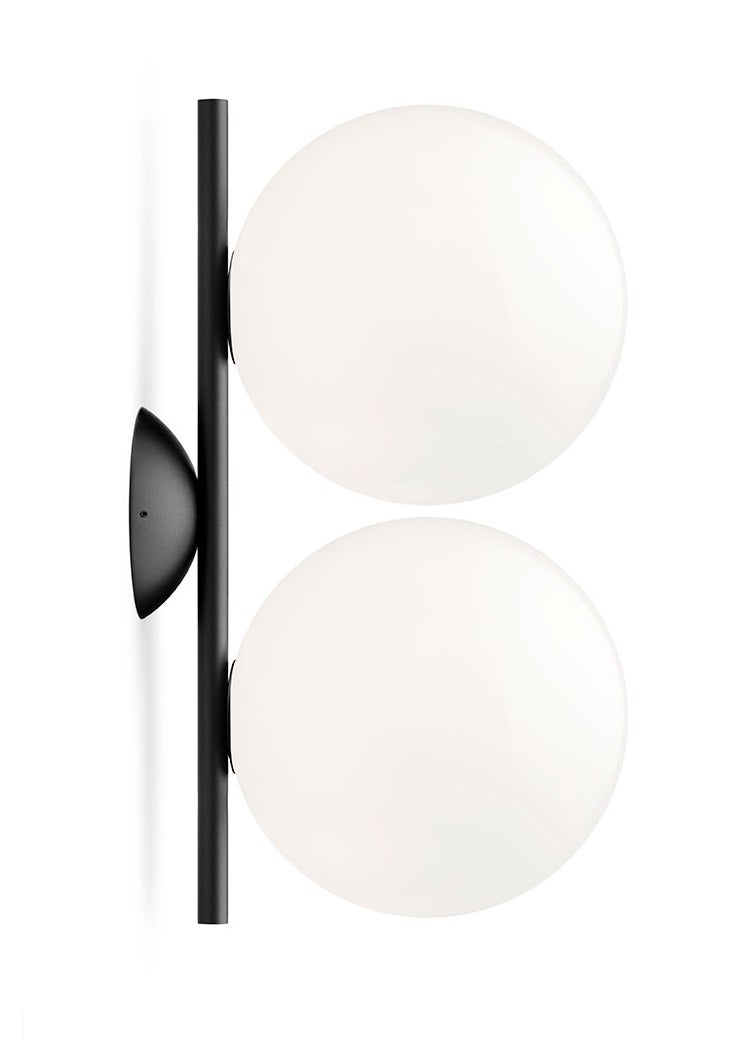 New IC Lights Ceiling/Wall Double can be mounted on any wall or on the ceiling. Frame available in brass, black, chrome, and our newly launched red burgundy finish. Blown glass opal diffuser.