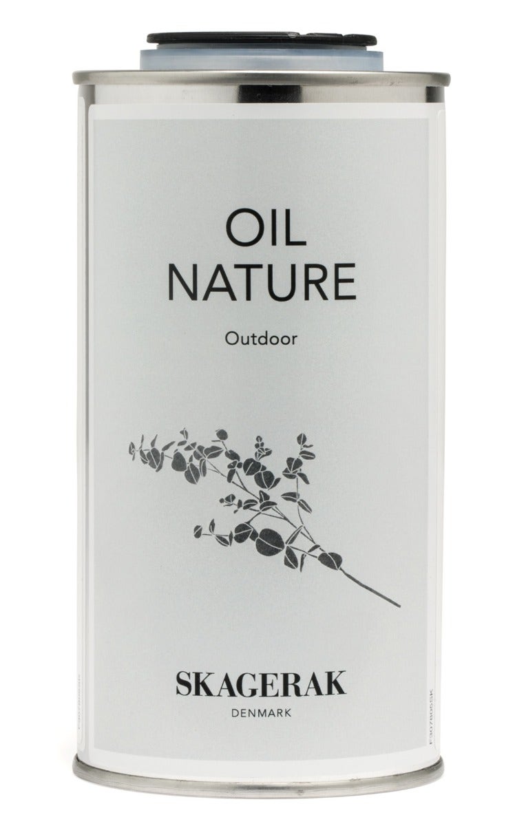 When placing untreated wood outside it will patinate over time and become silver-grey in the end. If you wish to preserve or intensify the original dark/golden/honey brown colour, use the natural oil for outdoor furniture. The oil is designed to protect wood types such as teak, western red cedar, cherry, and mahogany. As the natural oil saturates and darkens the surface a little, it brings out the natural beauty of the wood and leaves it well-nourished, resistant to water, dirt and grease.