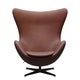 This 150th Anniversary Edition 3316 and 3127 are upholstered in Grace leather in an all-new colour, dark brown, with a distinctive chestnut hue. It goes without saying that the tactile experience is out of the ordinary. Grace is a premium, aniline leather from the finest quality hide. Displaying characterful, unique markings, it has a soft handle and an exclusive look. Its natural surface structure varies in colour and acquires a lighter patina over time. Breathable and comfortable, this full grain leather adds a timeless sense of luxury to furniture designs. The brand-new chestnut-coloured Grace leather was designed exclusively for Fritz Hansen in collaboration with Danish leather manufacturer brand Sørensen. The star-shaped, swivel base of the chair and non-swivel footstool are made with black PVD coated metal. The shell of the chair has an adjustable tilt fitting which can be adjusted to the weight of the individual user.