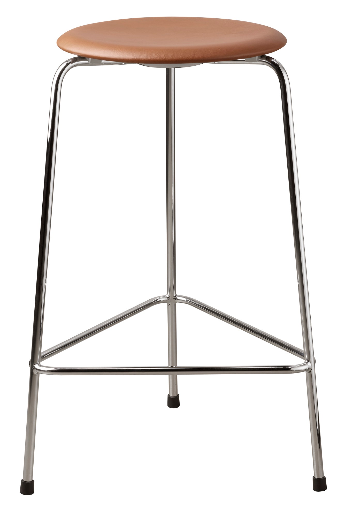 Meet an Arne Jacobsen favourite in the shape of a sophisticated counter stool. The Danish designer and architect Arne Jacobsen first introduced the three-legged Dot™ stool back in the 1950s alongside his first stacking chair the Ant™. Dot as a three-legged counter stool is perfect for a spacious open kitchen or the standing desk at home. The High Dot™ is now available with chrome base and a luxurious leather seat