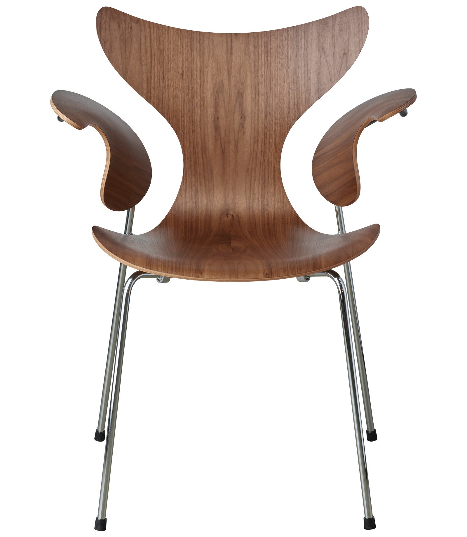 The Lily™ was originally designed for the Danish National Bank. The first model was 3108 from 1968, and the chair was introduced to the market with arms, model 3208, at the Danish Furniture Fair in 1970. The chair is made from laminated sliced veneer and is the result of an extremely complicated moulding process that ensures the perfect curves and the best comfort.