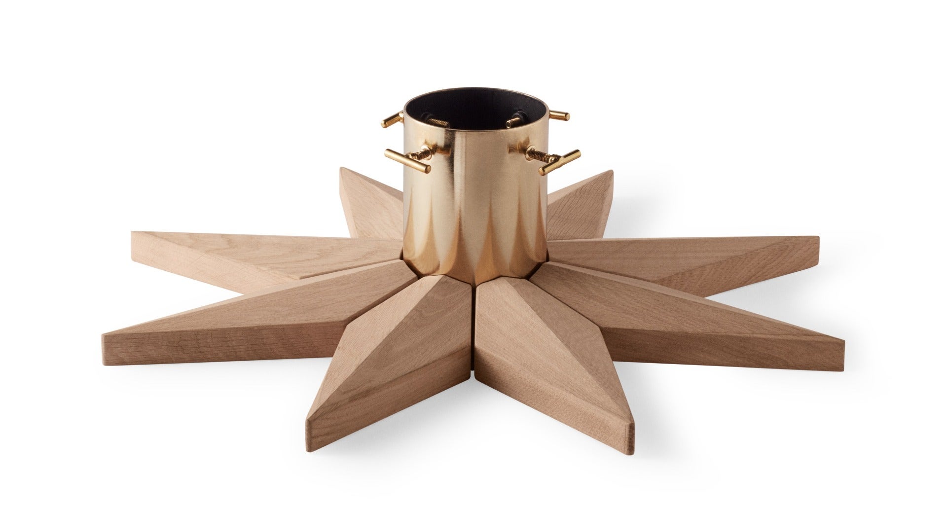 An eight-point star sits at the base of the tree, reflecting the beautiful pointy pattern all the way around the gilt cup. The cup can be filled with water to keep your tree from drying out and small screws make sure that the tree stands upright all Christmas long.