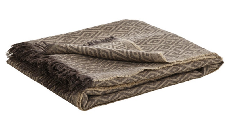 An expressive design by Jaime Hayon, this throw is designed for comfort. Made of 100% superfine wool and enriched with fringes that refer to the textile tradition of India and the East, the geometric pattern in earthy tones is woven into the throw creating a dynamic look together with the subtle shades of gray-brown.