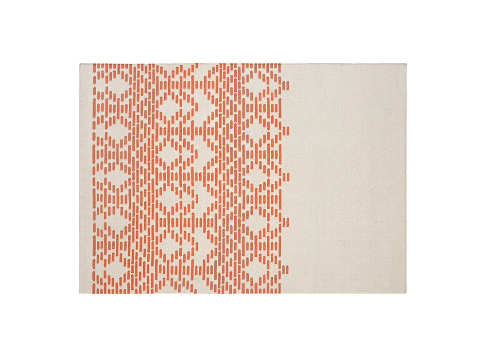 Geometry, repetition of shapes and neutral colors combine in THAY, a design by Maria Mengual that evokes the beautiful motifs of Thai fabrics and reinterprets the lines of traditional Persian kilims. The result is an elegant contemporary rug with an ancestral style, achieved thanks to the simplification of patterns and a neutral color palette.