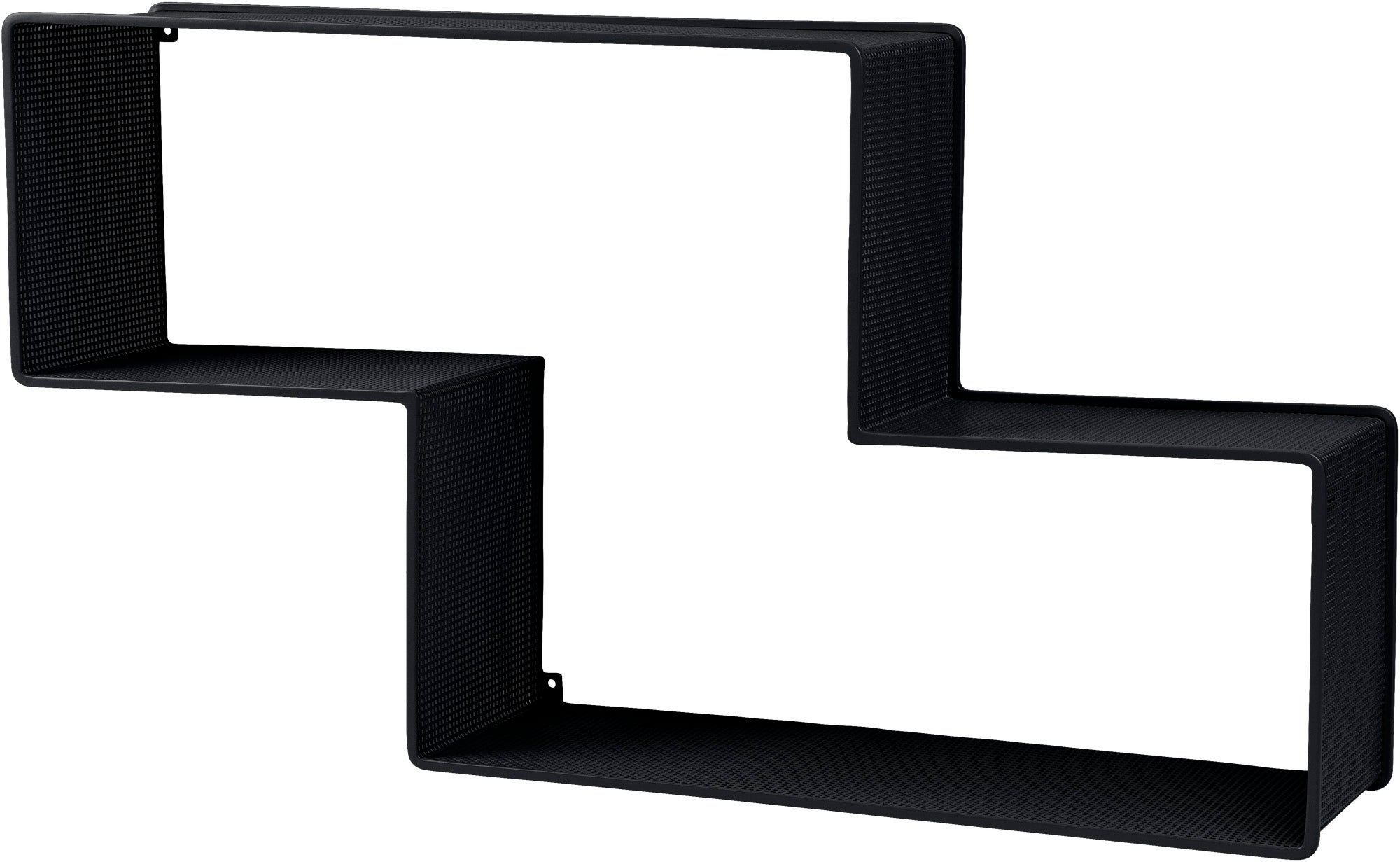 Mathieu Matégot's Dédal Shelf is a result of his passion for the groundbreaking and innovative pairing of metal tubing and perforated metal sheet. The Dédal Shelf is designed in 1955 and holds the advantages that Rigitulle entails - the metal's hardness as well as the fabric's lightness. Though apparently simple, the Dédal Shelf is often composed on several levels. The graphical shape matches each other and when grouped together they form a new design, almost a geometric pattern - especially when the shelves are juxtaposed.