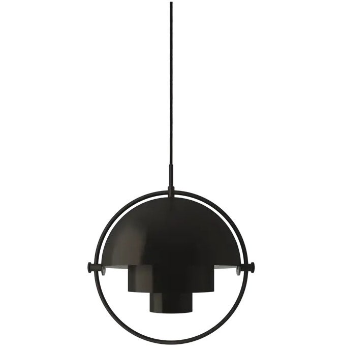 The Multi-Lite was first drawn in 1972 when Louis Weisdorf did an exception to his own design custom of using multiple repeating elements. Instead it reflects his passion for diversity. Two cylindrical shapes lay the foundation of the lamp and a metal ring encompasses it and anchors the two quarter-spherical shades, which ultimately completes a picture of an iconic design with multiple purposes. The Multi-Lite Pendant has a timeless expression that fits into any domestic setting.