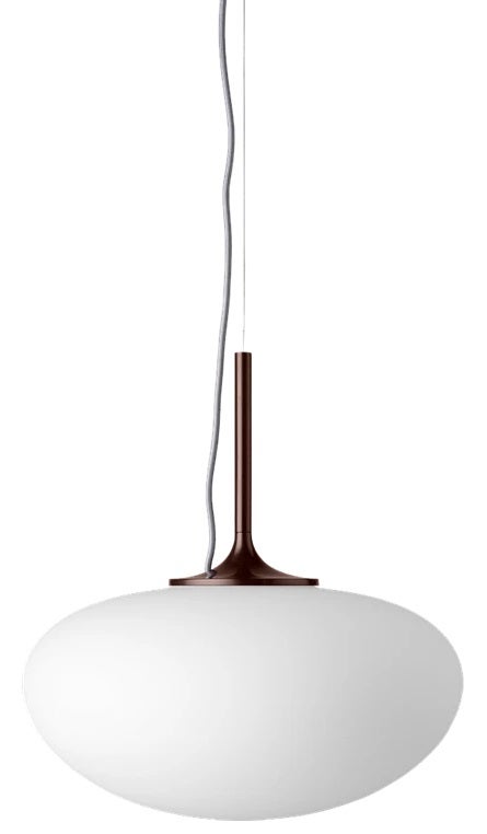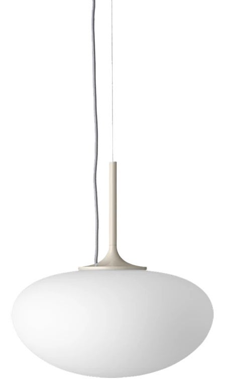 Today’s Stemlite remains true to Curry’s designs, comprising three of the original heights: two table heights, one of which was originally conceived as a floor lamp and the original floor lamp height. A second, taller floor lamp has been added and a pendant light has been engi- neered by simply flipping the original design upside-down. A counterweight has been hidden in the negative space created by the geometry of the foot of the upright lamps to meet con- temporary safety requirements regarding stability and versions of the floor and pendant lights with new larger globes are also available.