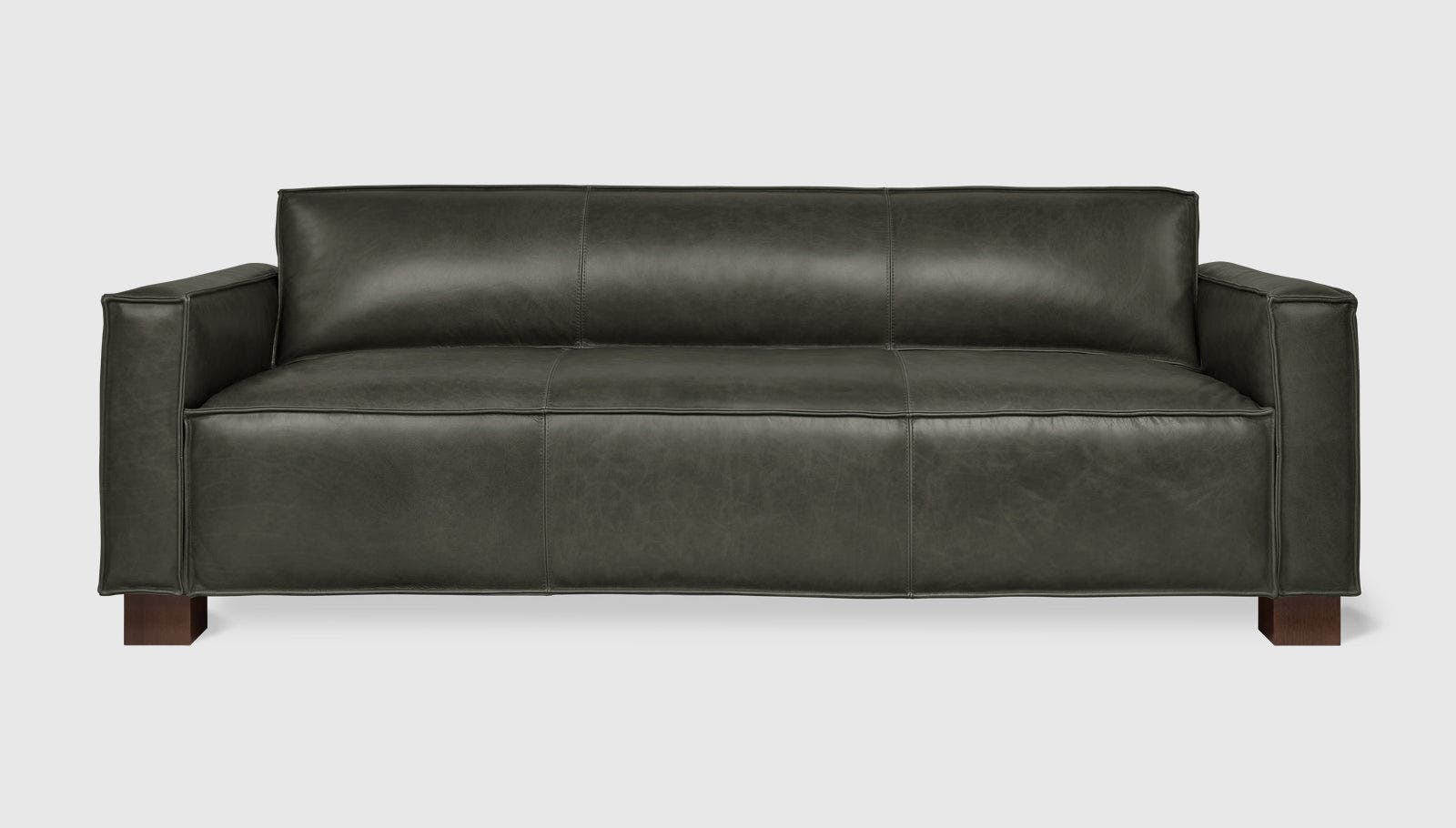 The Cabot Sofa features a tight seat and back, with architectural, wood block feet and simple French seams, offering a comfortable, modern take on a traditional, masculine design. Available in vintage leathers chosen for their unique grain characteristics that will age beautifully and develop a rich, natural patina over time. Also available as a chair. Our leather hides are carefully selected for their raw, natural surface characteristics which make each piece unique.
