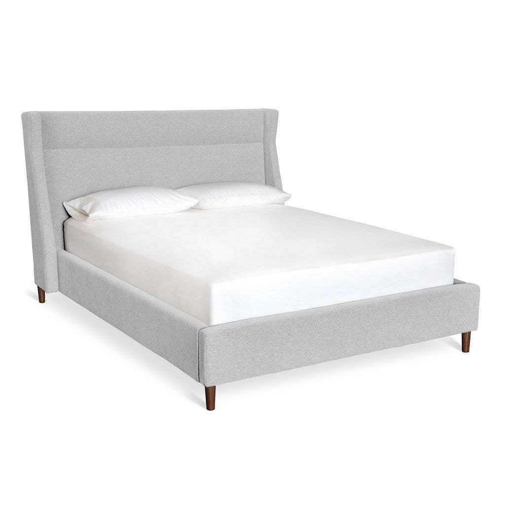 The Carmichael Bed fuses traditional and contemporary sensibilities, bringing clean, modern lines to a classic style. The design features a fully upholstered headboard, footboard and side rails, with elegant, tapered solid wood legs. The bed includes a sturdy mattress suspension system which eliminates the need for a box spring. All wood used in the frame and legs is FSC®-Certified, in support of responsible forest management.