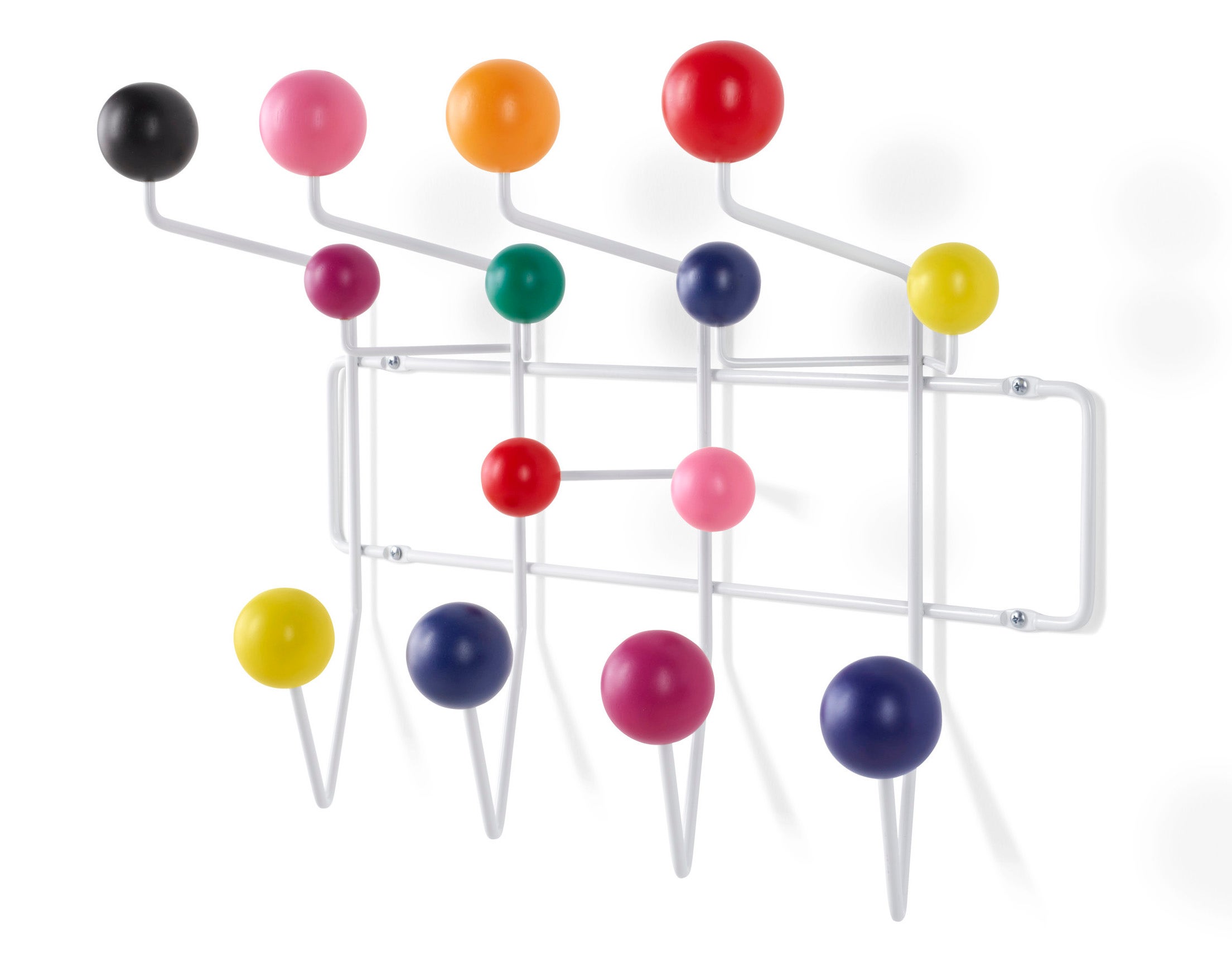 - Solid wood balls serve as handy hooks