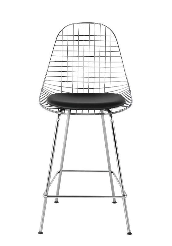 The Eames Wire Stool is an elegant, elevated iteration in the Shell Chair’s continuous evolution. In the 1950s, the Eames Office started experimenting in bent and welded wire and developed a number of pieces, including the wire version of the single-shell form. Set atop an elongated 4-leg base, the Eames Wire Stool brings the timeless Eames touch to bar and counter height surfaces.