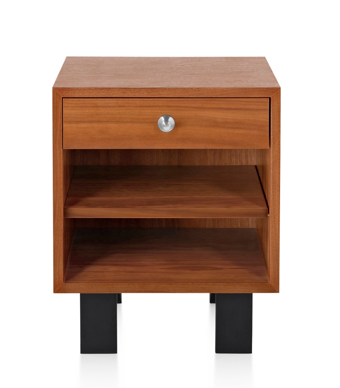 This cabinet is the smallest piece of George Nelson’s Basic Cabinet Series, a standardized system of casegoods that can combine and adapt to a variety of uses and environments. Able to stand alone or atop the Nelson Platform Bench, the efficient design offers 2 veneer choices and options for doors, legs, a drawer, or open shelf to create enduring, versatile storage.