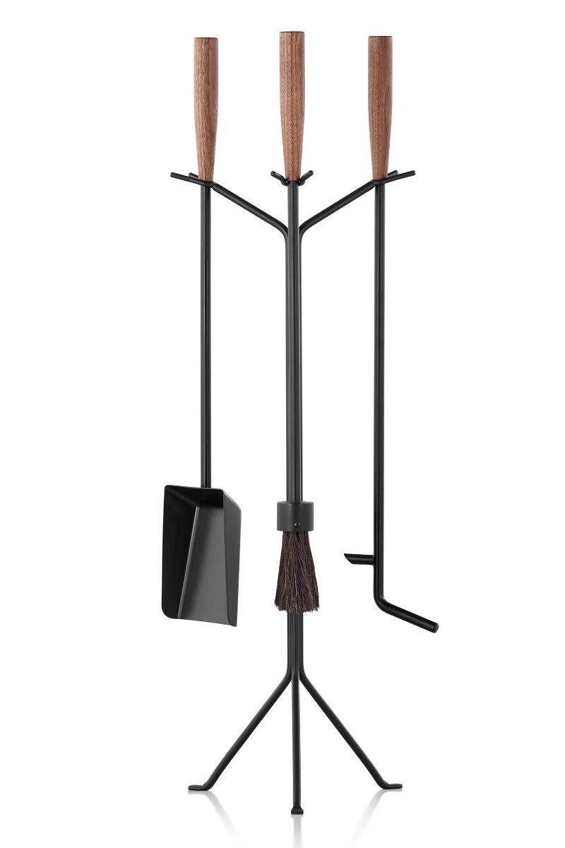 More than a set of useful accessories for tending your fireplace, Nelson Fireplace Tools encapsulate George Nelson’s ability to create objects that achieve a sense of timelessness through their inventiveness and quality. The set of tools includes a poker, shovel, brush, and floor stand. Originally produced in cast iron with polished birch handles, these pieces have been updated and are now available in durable powder-coated steel with walnut.