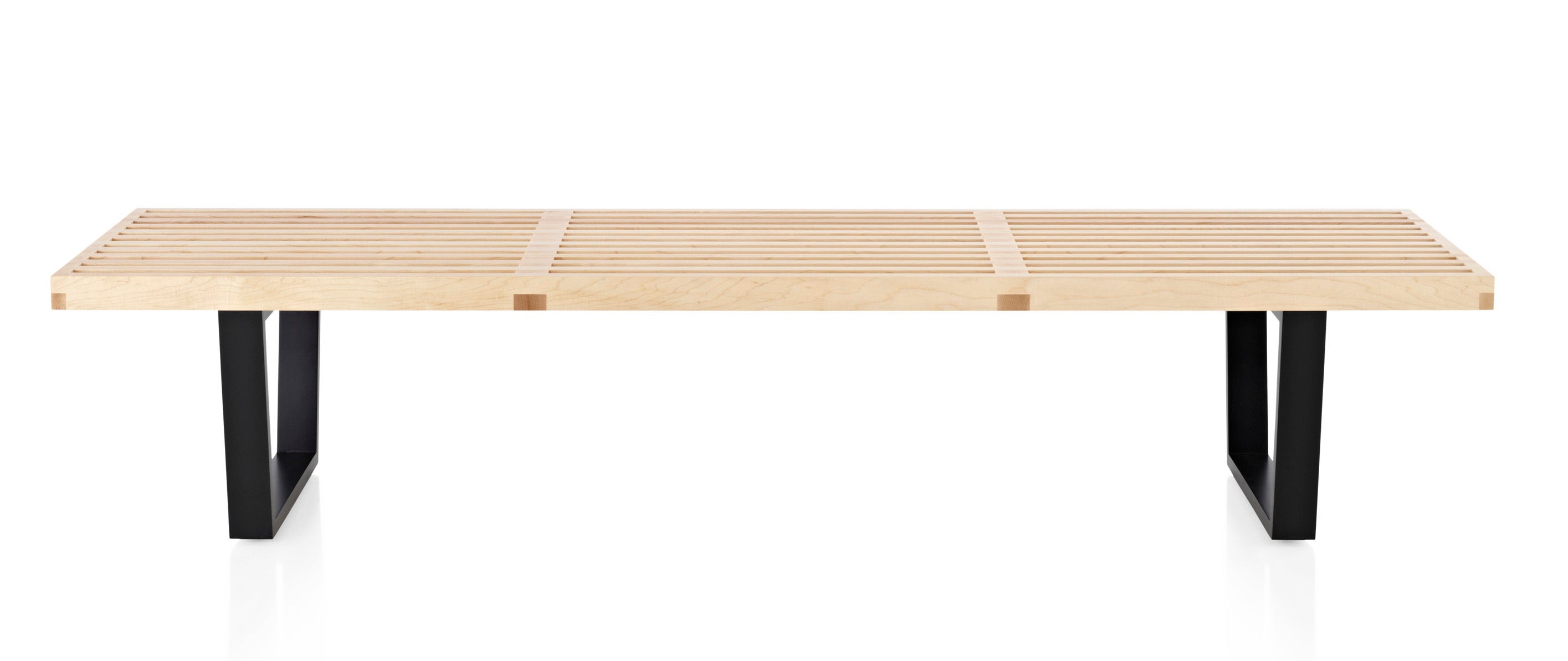 Equal parts seat and surface, this landmark design emerged from George Nelson’s Fortune magazine office to join his first Herman Miller collection in 1946. Made with polished chrome or ebonized wood legs, and available in 3 lengths, it is ideal as a bench, low table, or foundation for the Basic Cabinet Series.