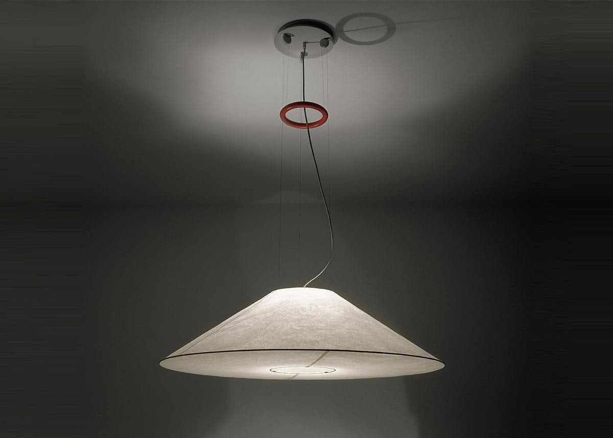 Japanese paper, metal. Height adjustable with red iron ring.
