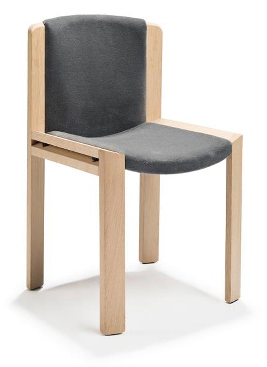 Designed by the forward-thinking Italian designer Joe Colombo, Chair 300 is a beautiful example of his functional design sensibility. Upholstered seat and back gently curved inside a modest, clear wooden frame with double horizontal slats give Chair 300 its appealing, comfortable and characteristic look.