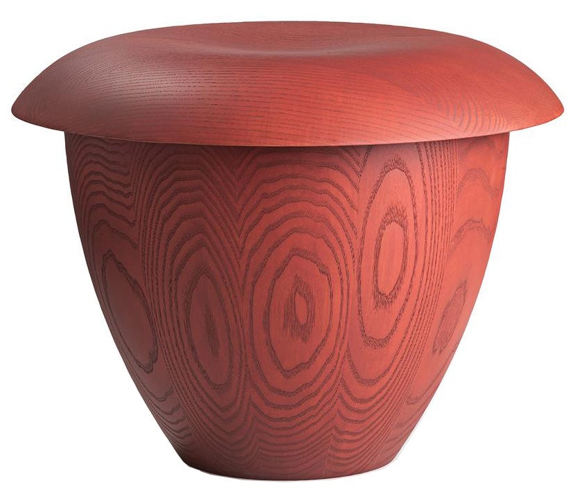 A rework of Dutch artist and designer, Aldo Bakker’s wondrous Pink Stool in urushi lacquer from 2015, Bon in stained ash exudes Bakker’s accomplished sense of serene form and materiality. The sculptural stool consists of two contradictive container shapes put together: an upright and deep vertical shape and a flat horizontal shape that defines the seating.