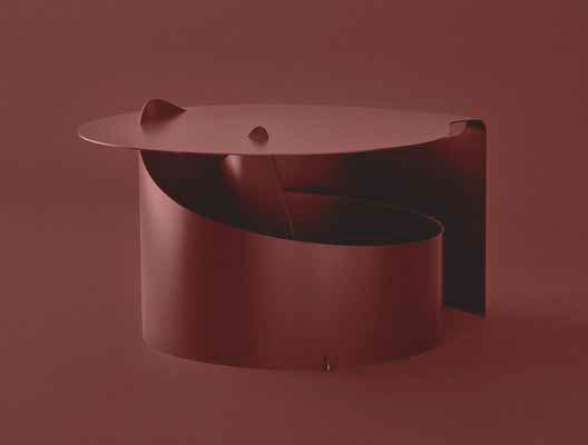 A single sheet of steel rolled in one smooth motion into a self-supporting construction. Aldo Bakker’s exquisite sense of merging colour, material and form has come into play to create an occasional table with an effortlessly sculptural appeal.
