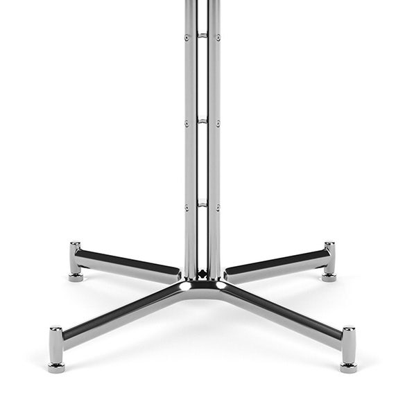The Iquo Café Table features an elegant pedestal base made of four vertical tubes and is intentionally flat where it meets the floor for comfortably resting your feet. Ideal for indoor or outdoor dining. This table seats up to 4 people.