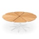 Richard Schultz cites Queen Anne’s Lace as his inspiration for this delicate outdoor table with its flower-like top sprouting from the elegant pedestal base. Each “petal” expands and contracts independently, ensuring stability in changing weather.
