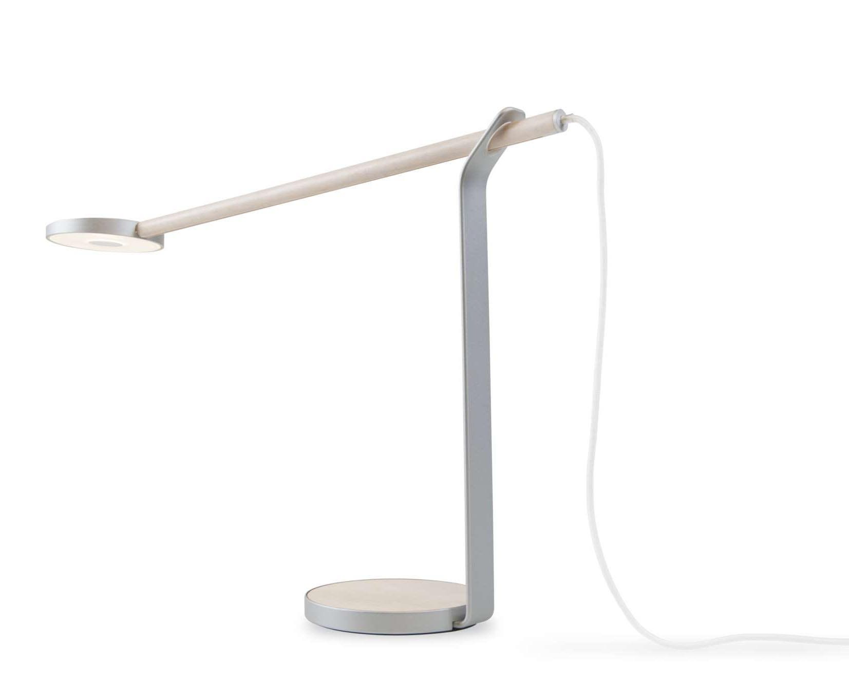 Gravy Desk Lamp is a unique desk lamp that brings style and warmth to your home or office. Edge lit technology in a circular LED head provides a soft, evenly distributed glow of warm light. The solid wood bar and base are offered in three different natural woods: light Maple, White Oak, and rich Walnut. A delicate aluminum stand supports the wood bar and LED head. Controlling the light is easy: simply tap the center of the underside of the LED head to turn on or off, and touch and hold to dim or brighten the light. Gravy is highly adjustable, providing the user with perfect light placement. This simple yet elegant combination of wood, aluminum and LEDs works beautifully to illuminate any space.