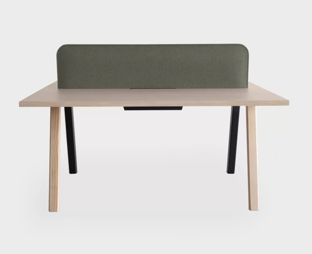 MDF tops covered in Fenix® laminate, bleached oak or open-pore black. Flush-mounted cable entry doors in the same finish and cable ducts in powder-coated bent sheet metal. Sound-absorbing partition covered in fabric. Also available on castors.