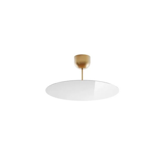 Halfway between a pendant and a ceiling lamp, Millimetro is composed of a very thin reflecting circular disk (1 mm thickness) and warm, enveloping light directed upward from below. The upper cap is attached to a stem that supports the metal disk with a mirror finish. The LED light source, concealed behind the disk, provides a diffused, uniform glow. To respond to various installation requirements, it is possible to choose from four different lengths for the stem that connects the body of the lamp to the ceiling attachment.