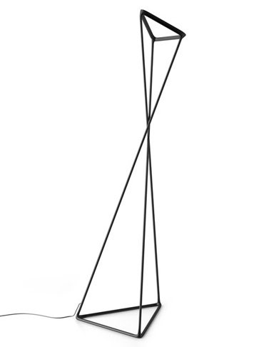 An innovative floor lamp for indirect lighting, in which the Argentine designer Francisco Gomez Paz has metaphorically transfigured the harmonious, sensual movements of the dance of the same name, giving the fixture a dynamic posture of variable geometry, which through a simple gesture makes it possibly to gently adjust the direction of the beam. Mounted on a triangular steel base, the jointed structure of the lamp composed of three mobile aluminum shafts with elastomer joints nimbly lends itself to a fluid mechanical torsion movement generated at the height of the middle part of the shafts. A movement that is propagated up to the top of the lamp, or at the position of the reflector, which is also triangular, setting its angle and making it possible to direct the light where it is needed with respect to the standard initial position, in which the beam is aimed upward, and the position of arrival, in which it is directed towards the wall. Outfitted with linear LEDs, the reflector of the lamp contains the electronic circuitry and emits diffused, homogeneous indirect light thanks to the screens in molded methacrylate. The on/off switch and sensory dimmer are placed near the upper part of one of the three shafts that support the lamp’s reflector.