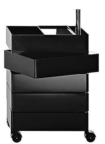 A strikingly simple and highly mobile storage solution, Konstantin Grcic’s 360° Container for Magis keeps pace with contemporary work and living spaces where considerable movement is the norm. The container’s drawer units swivel out to 360 degrees to open, and casters allow for convenient mobility.